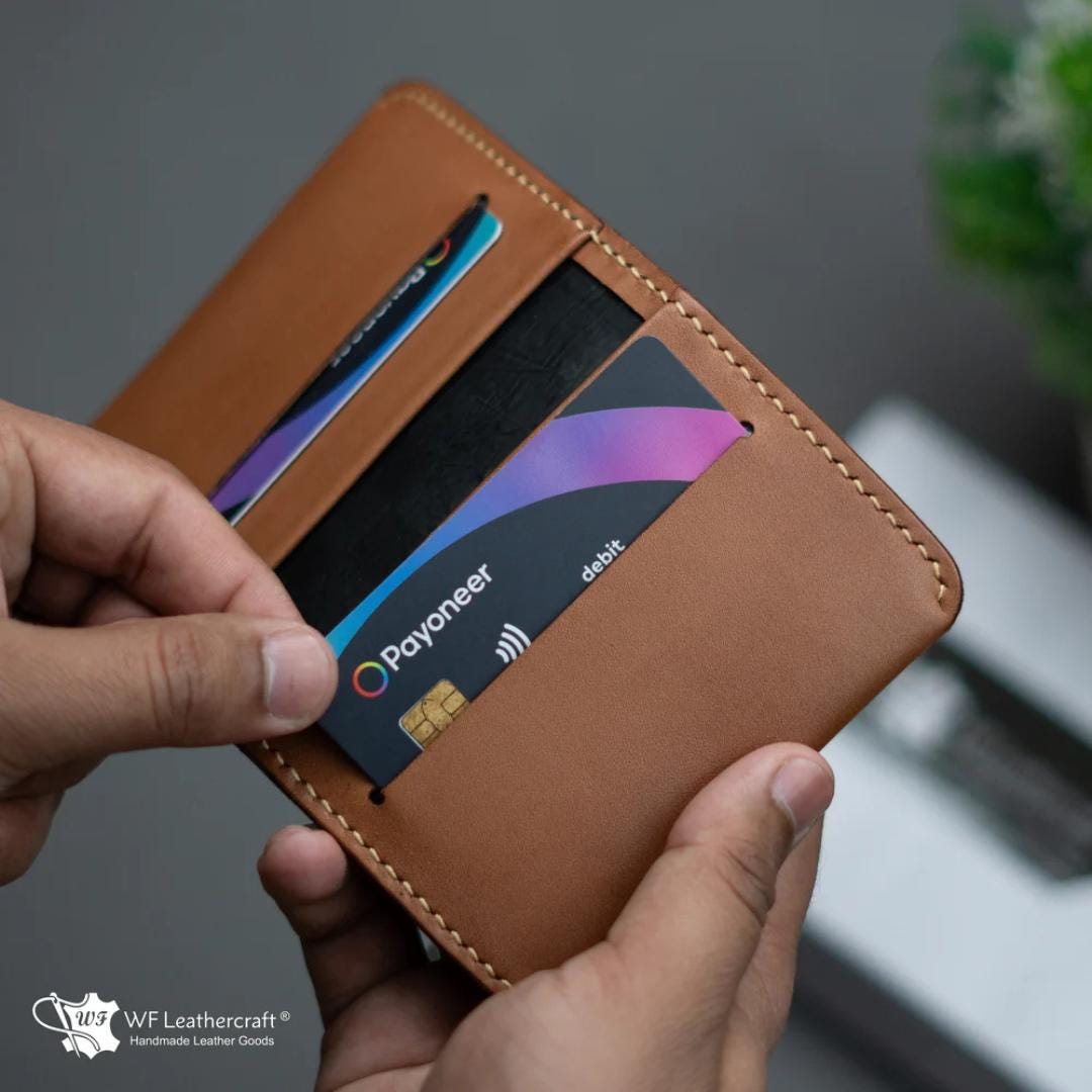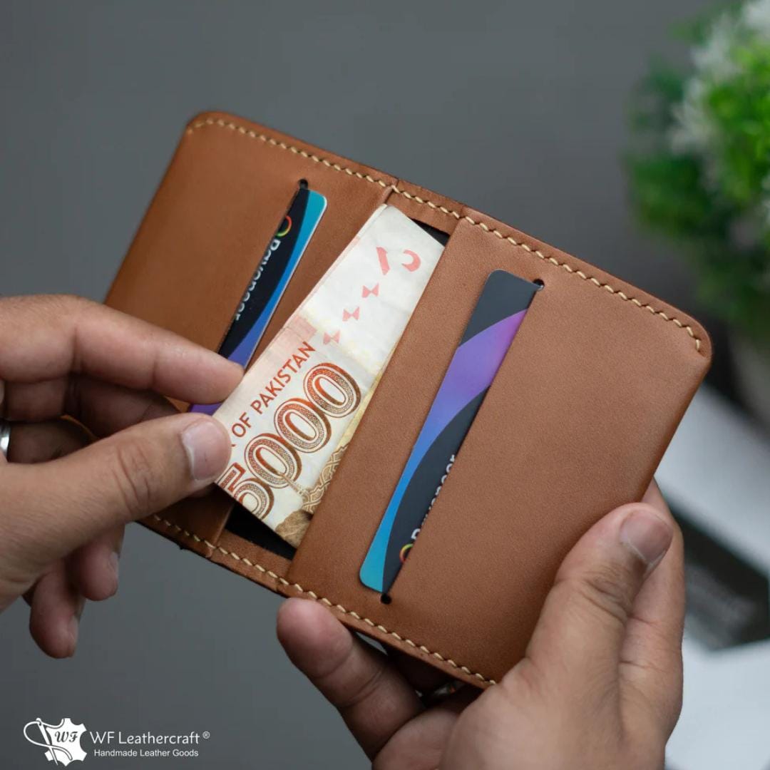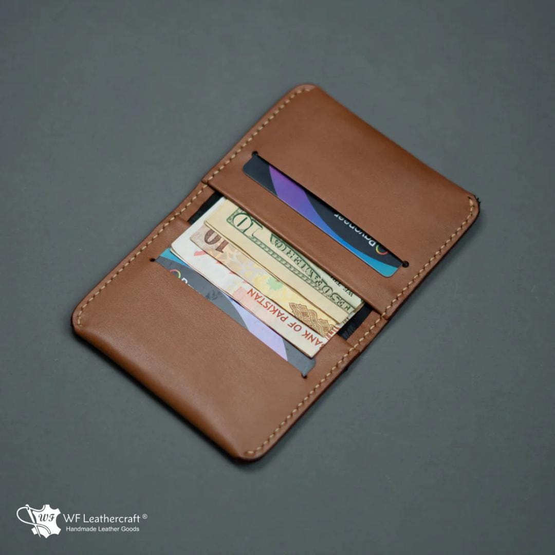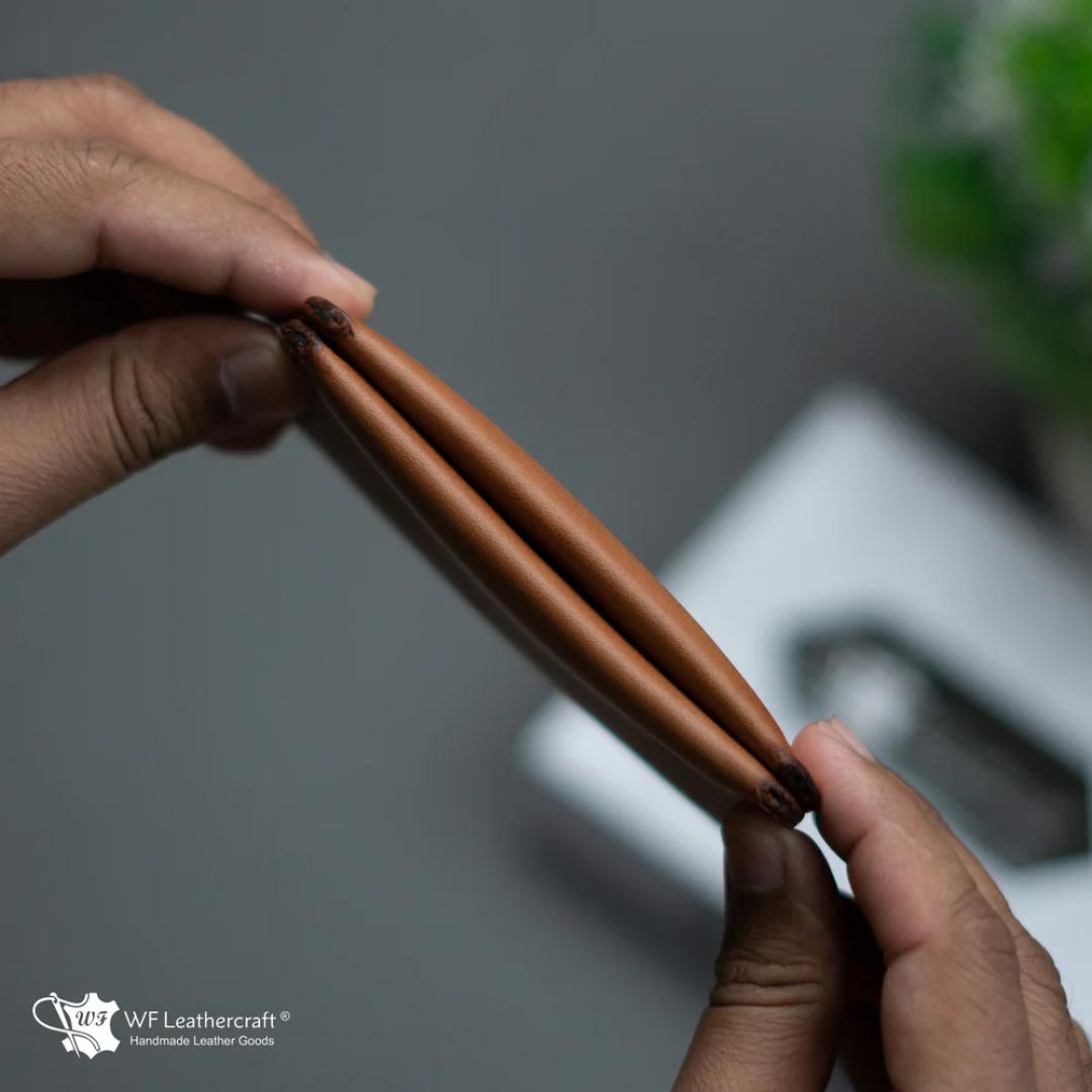 Introducing our latest innovation, the No. 85 Tan color Slim Ever Card Wallet, designed for the modern minimalist. This wallet is not only the most compatible but also the slimmest you'll ever find, making it ideal for individuals who carry multiple cards without the bulk. Crafted from luxurious full-grain leather and lined with high-quality fabrics, it offers a premium touch. The innovative interior fabric ensures a smooth, effortless experience when sliding cash and cards in and out, elevating your daily essentials to a new level of convenience and style. Artical 66