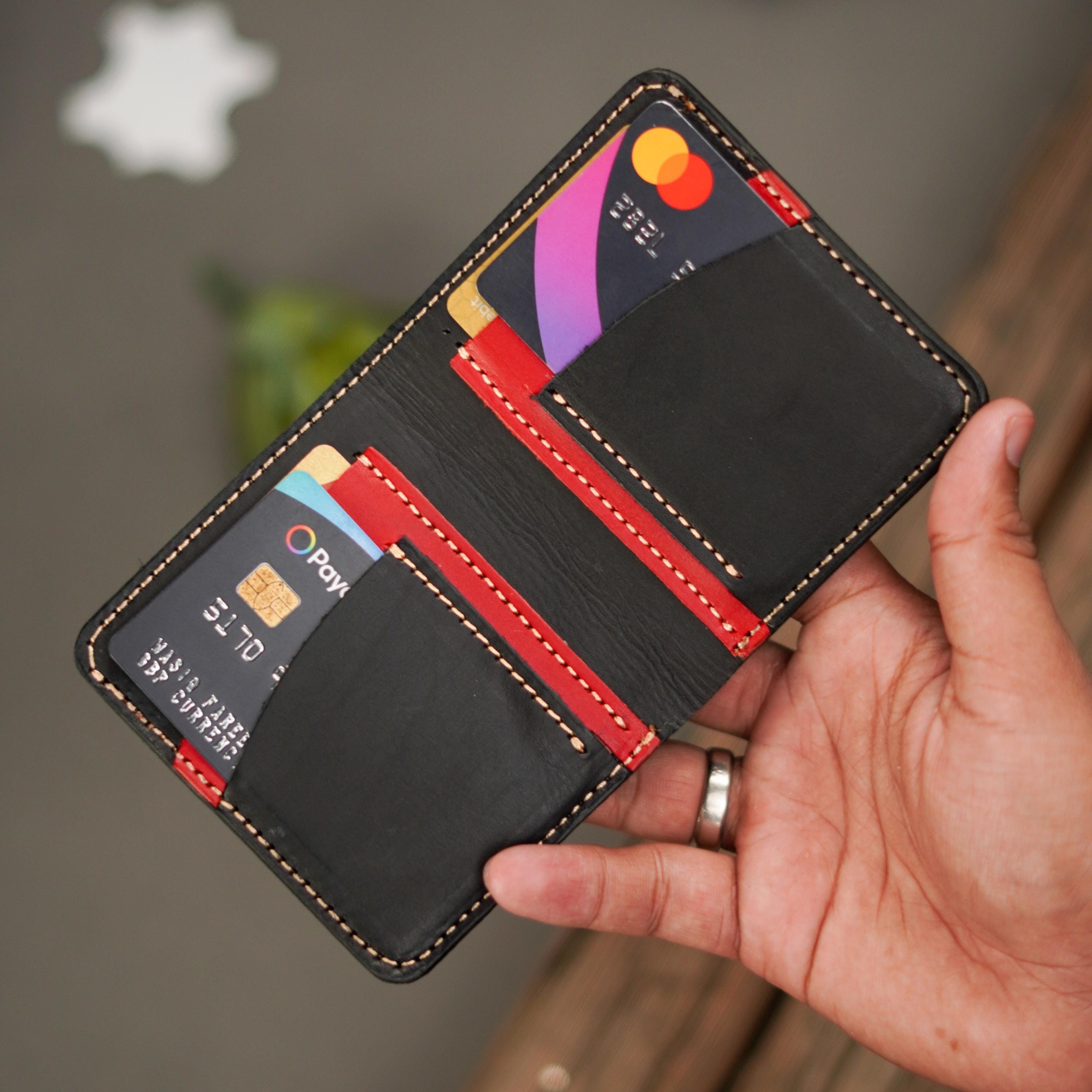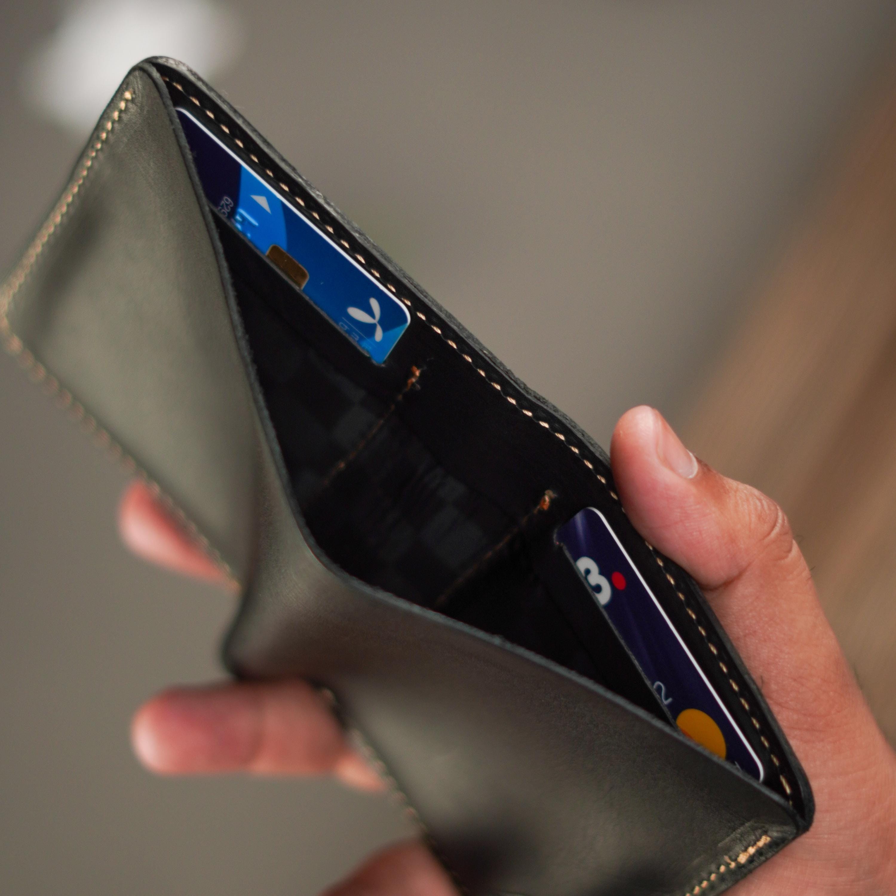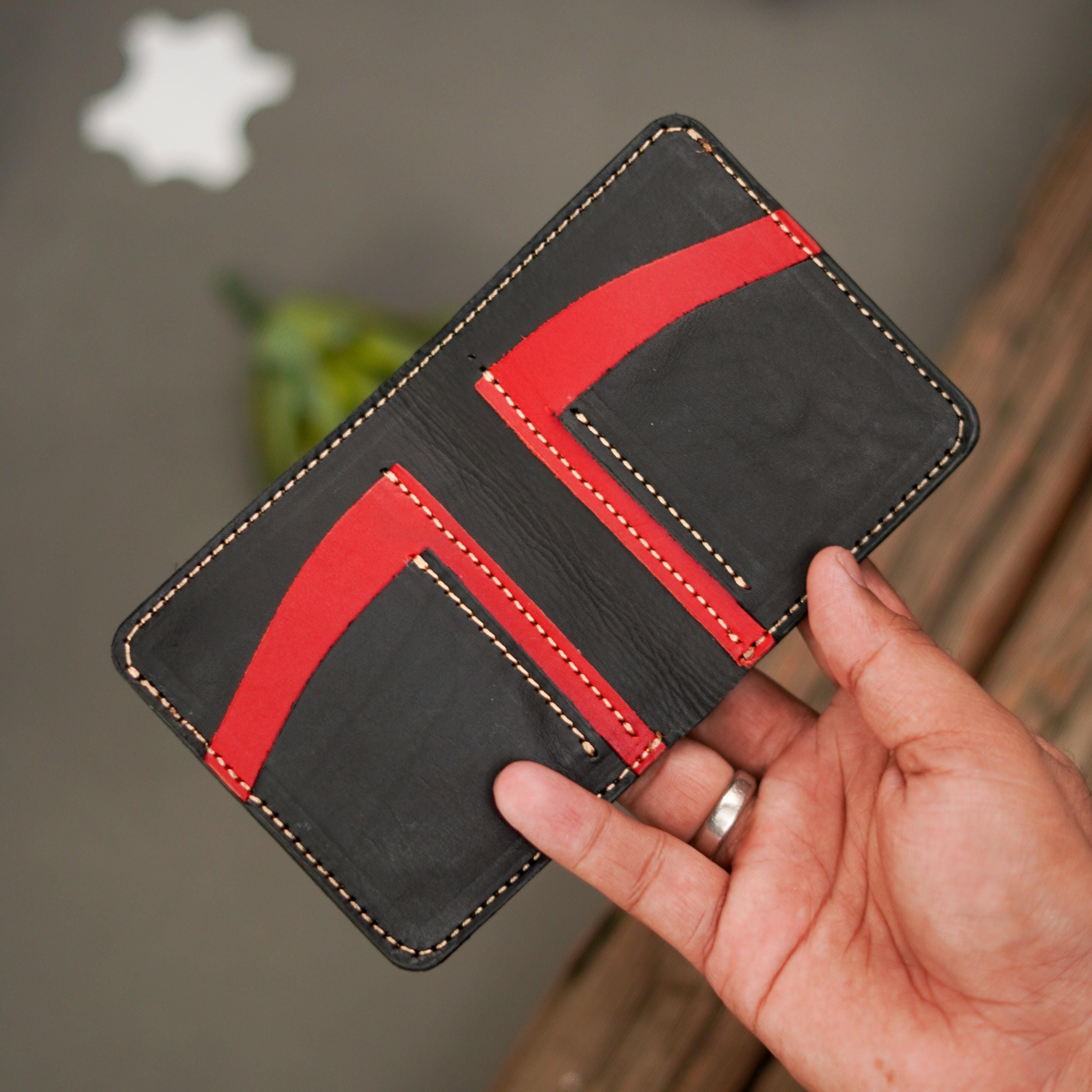 A reverse bifold wallet for the minimalist. It is made from 100% Full-grain Chrome tan pullup. This wallet will last you many years and is handcrafted to ensure maximum quality and durability.