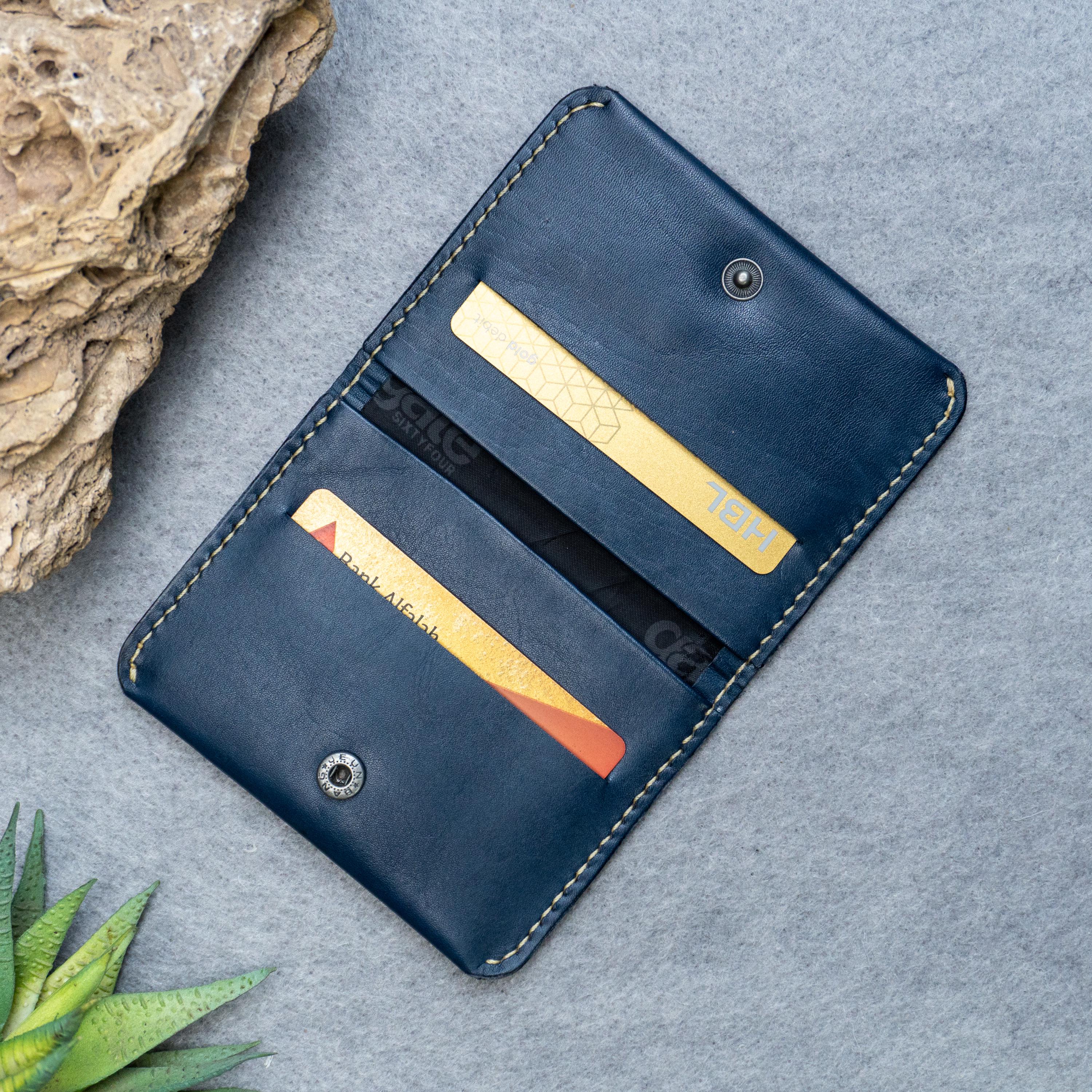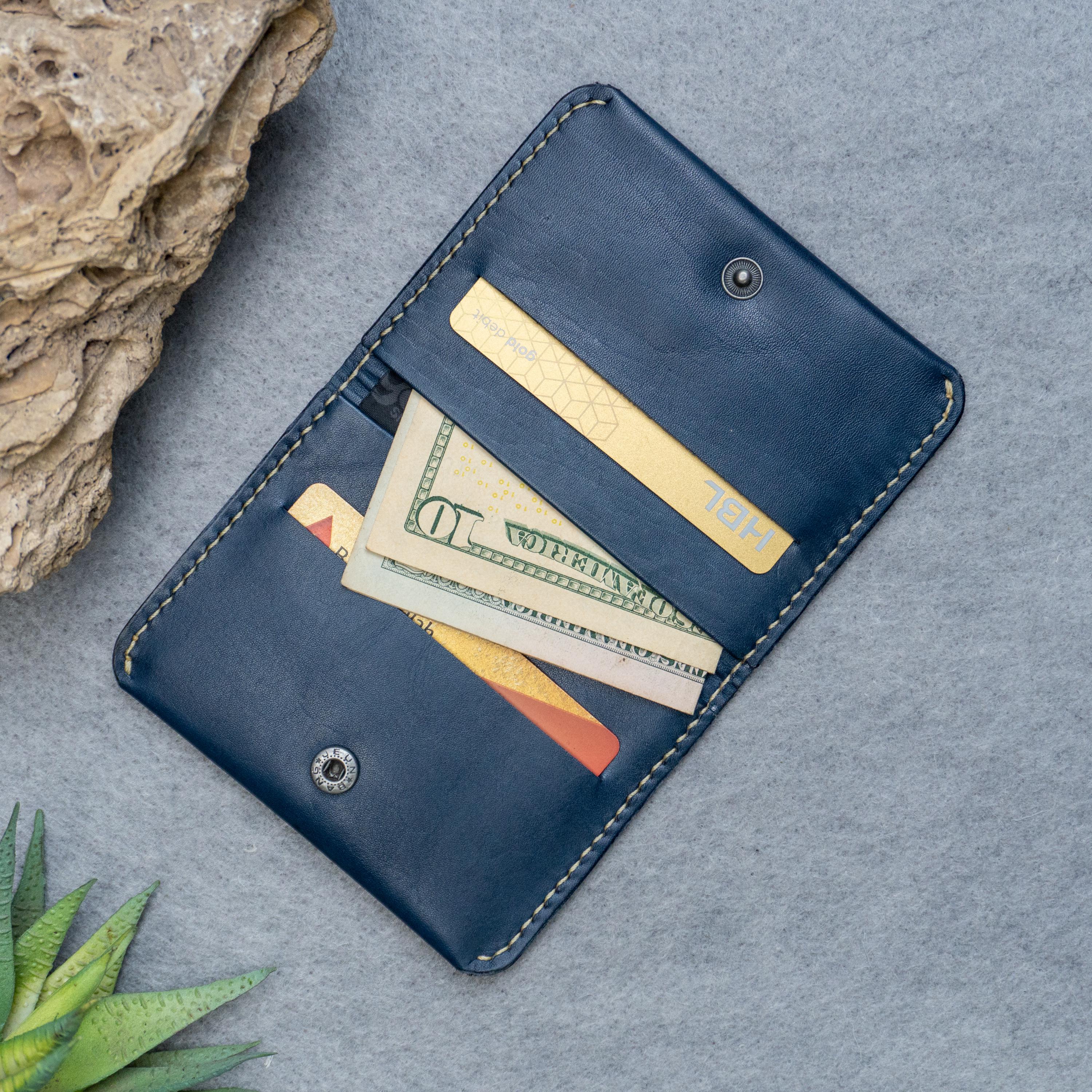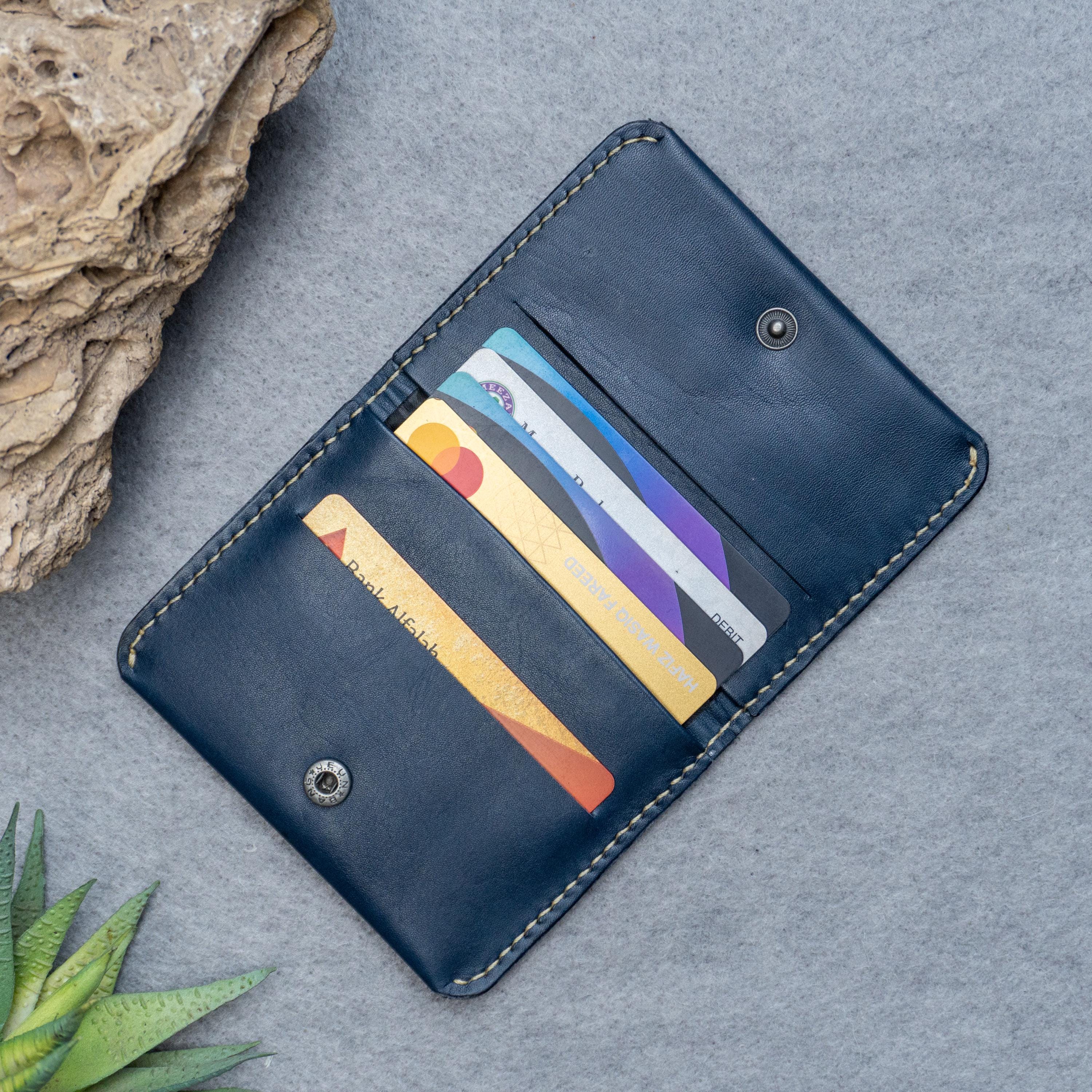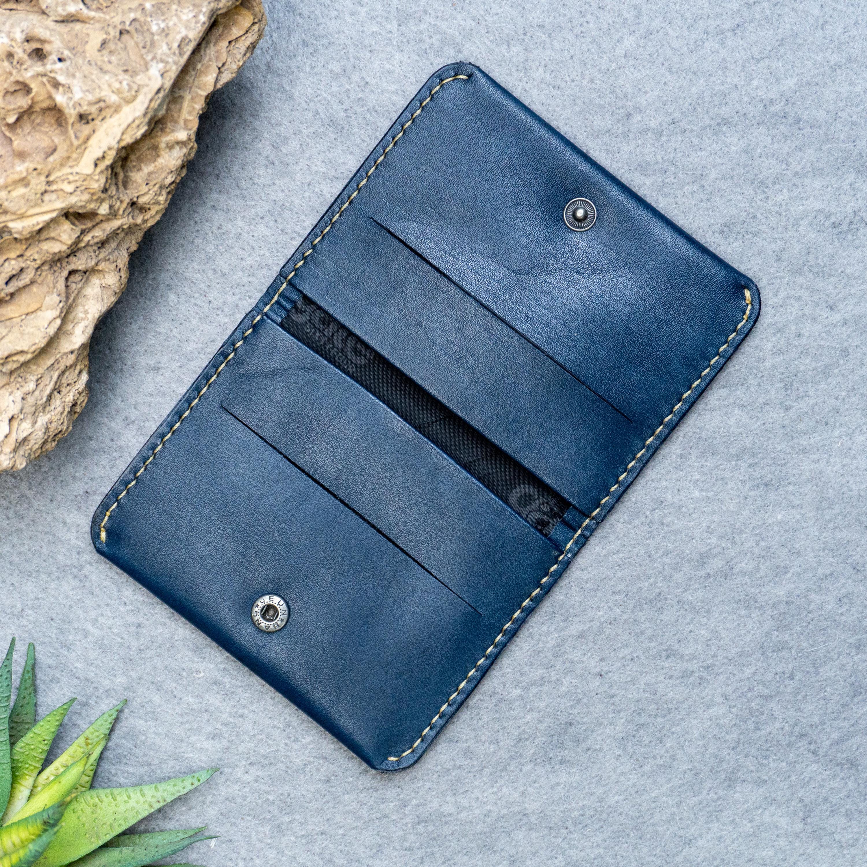 Introducing our latest innovation, the blue Slim Ever Card Wallet, designed for the modern minimalist. This wallet is not only the most compatible but also the slimmest you'll ever find, making it ideal for individuals who carry multiple cards without the bulk. Crafted from luxurious full-grain leather and lined with high-quality fabrics, it offers a premium touch. The innovative interior fabric ensures a smooth, effortless experience when sliding cash and cards in and out, elevating your daily essentials to a new level of convenience and style.