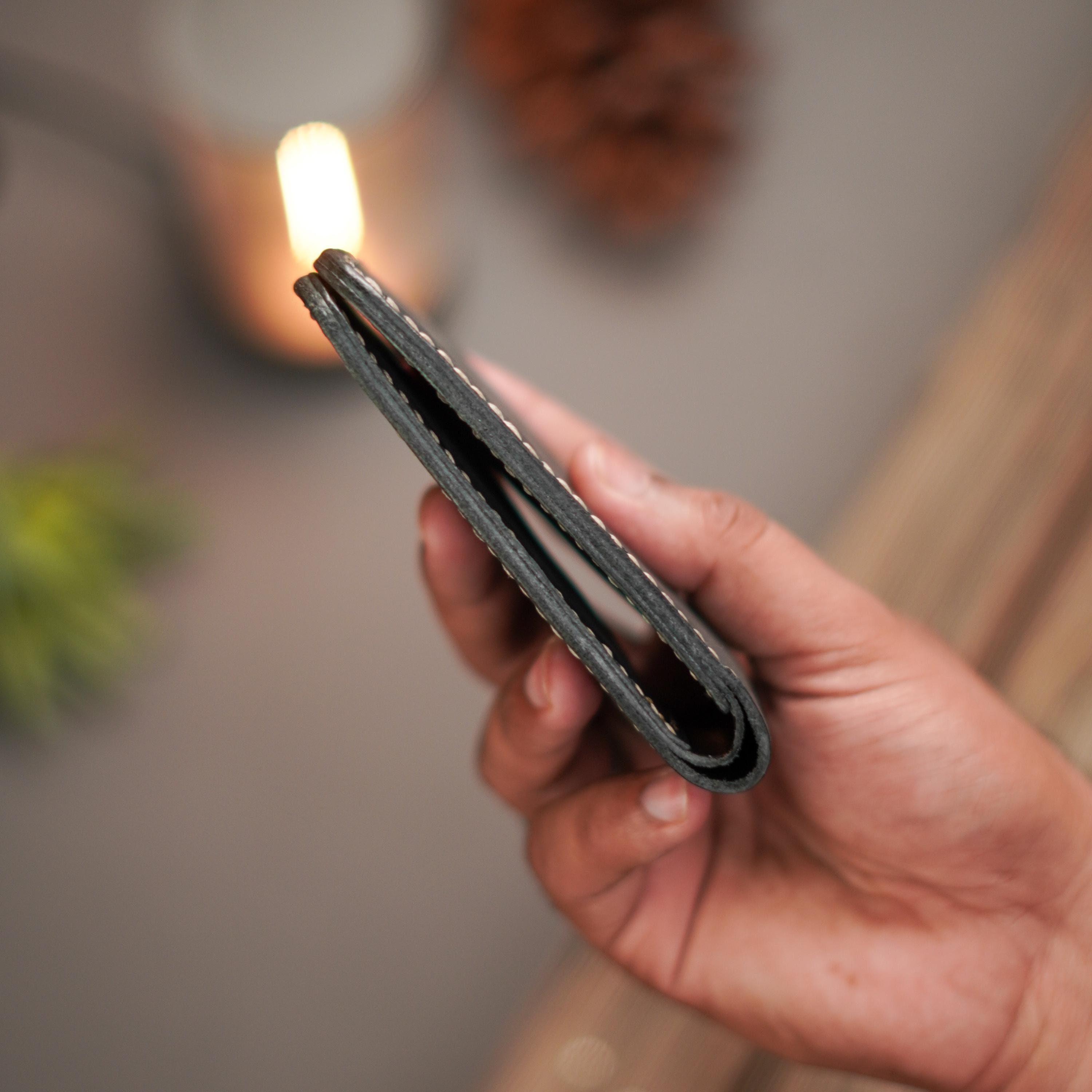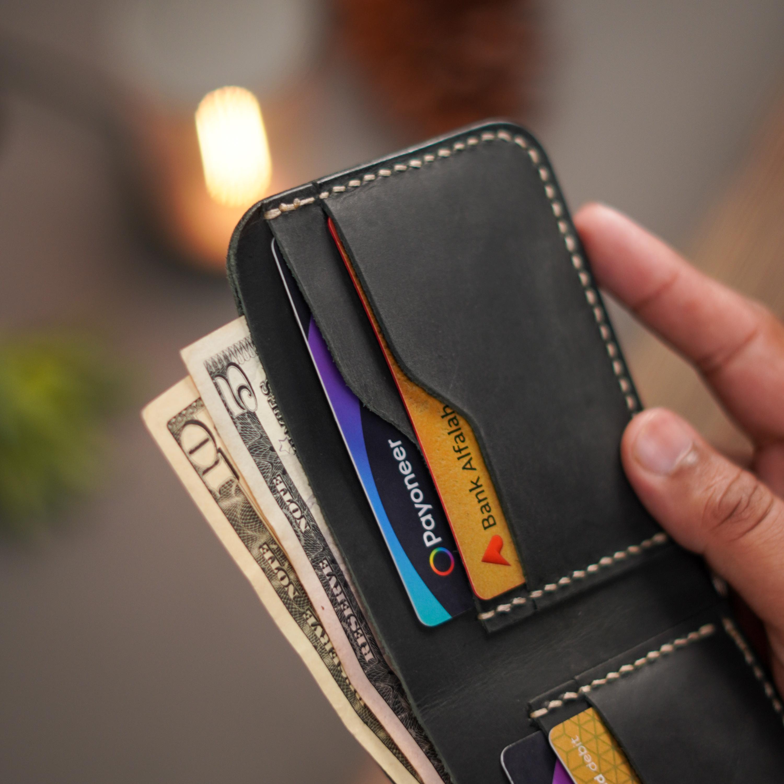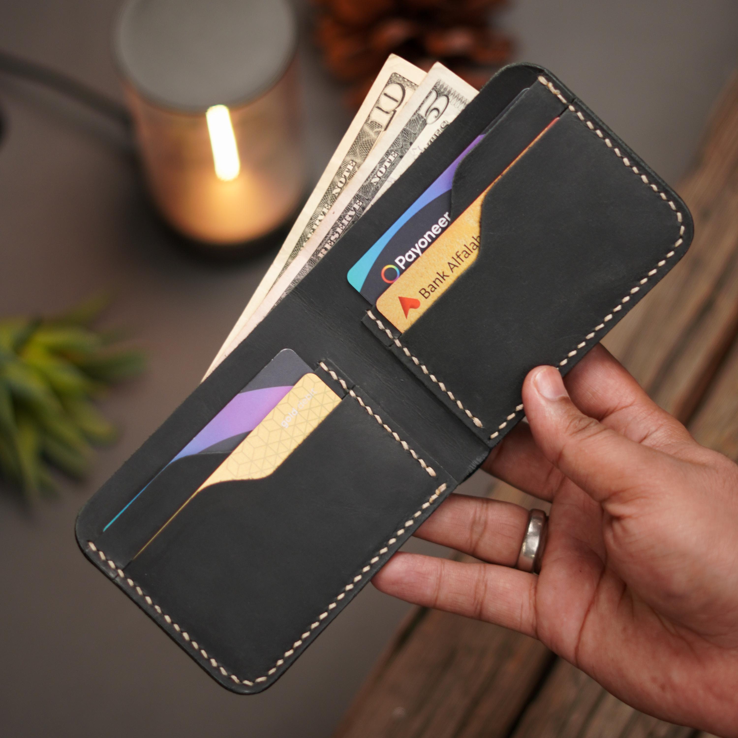 A reverse bifold wallet for the minimalist. It is made from 100% Full-grain. This wallet will last you many years and is handcrafted to ensure maximum quality and durability. Article 43