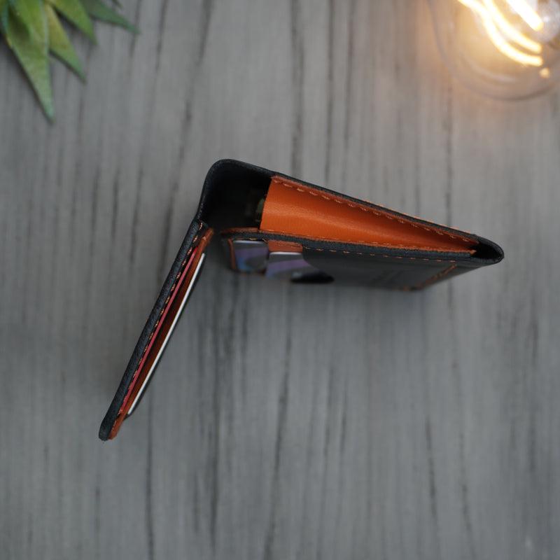✔4 card slots which hold 2 cards each and 2 cash pockets