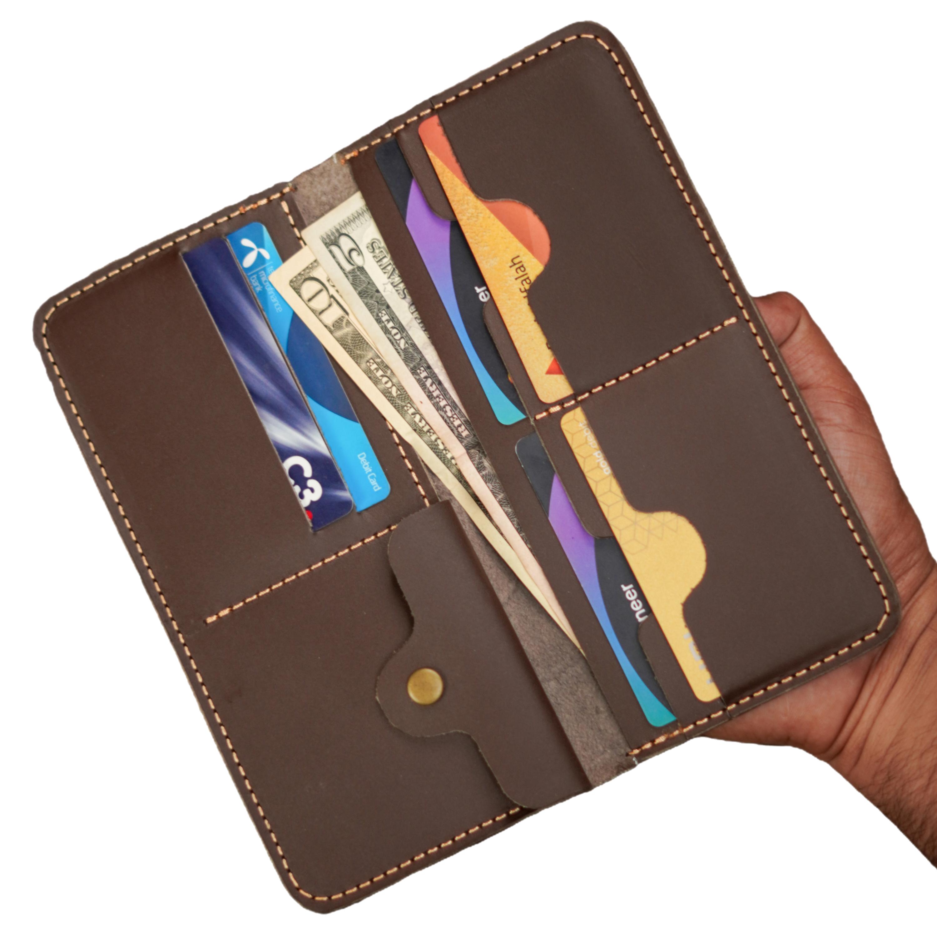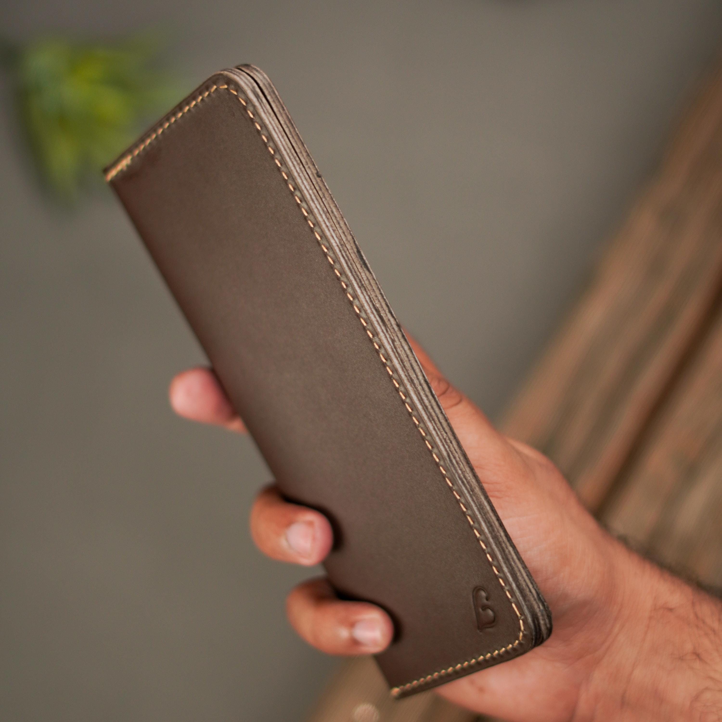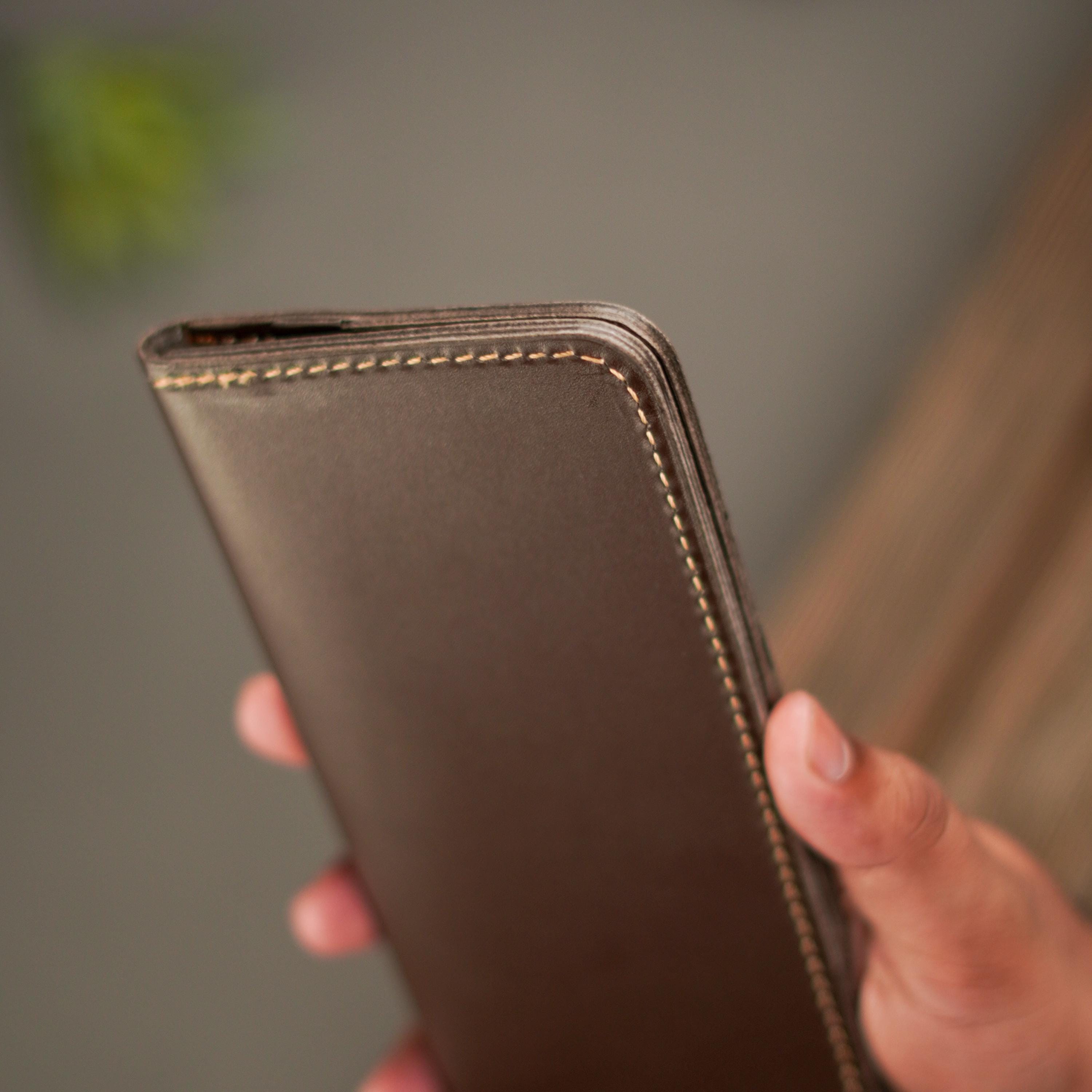 A reverse bifold Long wallet for the minimalist. It is made from 100% full-grain cow leather. This wallet will last you many years and is handcrafted to ensure maximum quality and durability. Article No.52