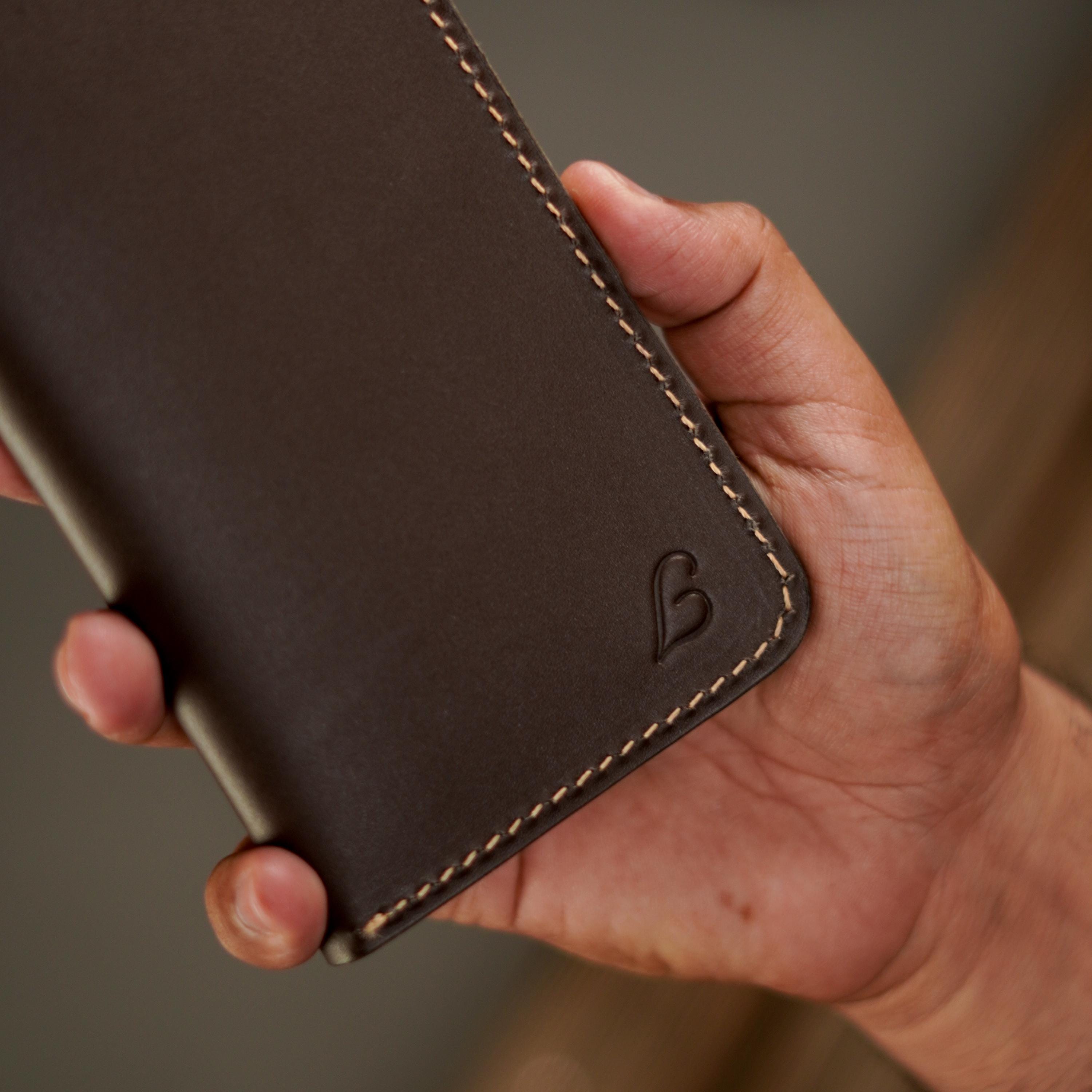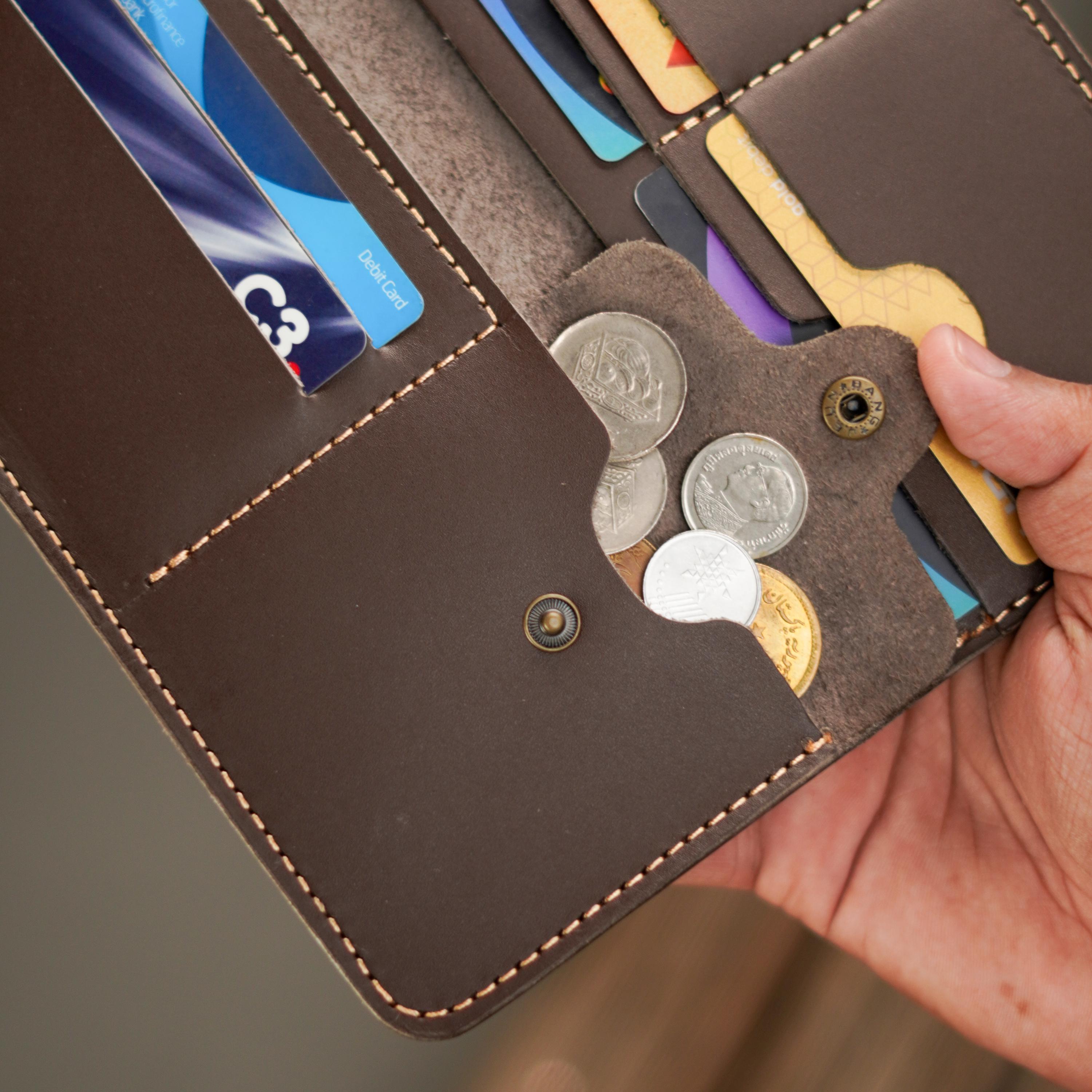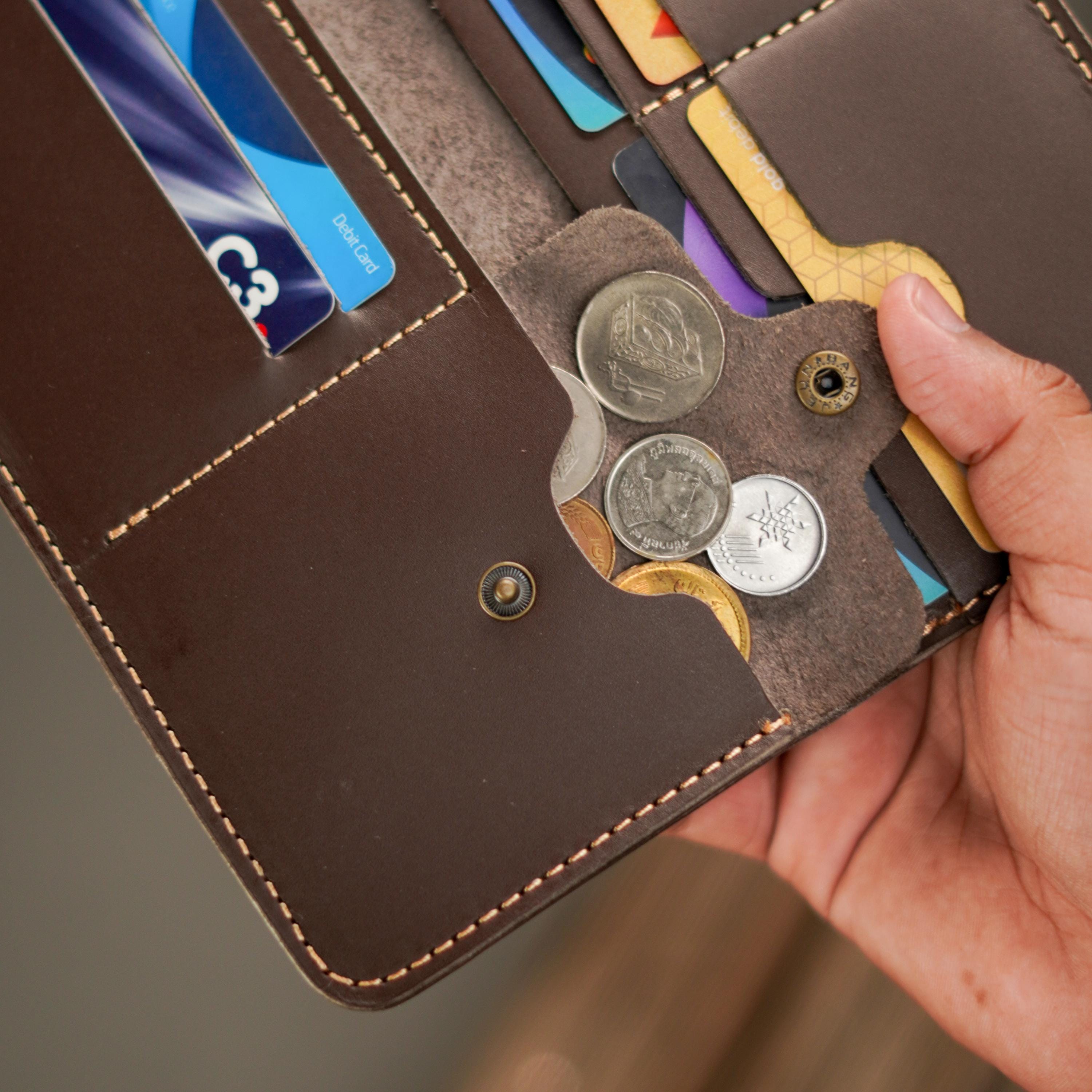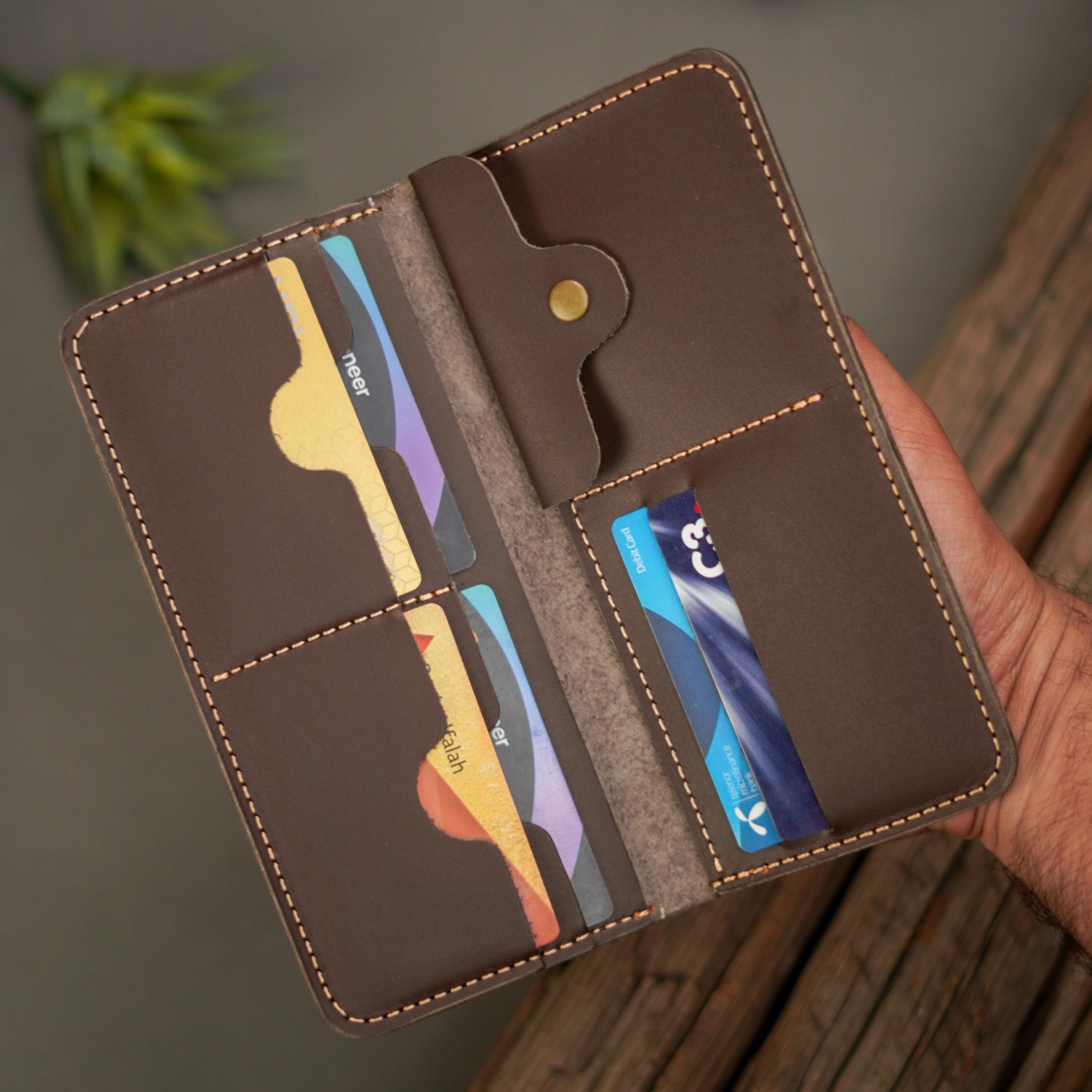 A reverse bifold Long wallet for the minimalist. It is made from 100% full-grain cow leather. This wallet will last you many years and is handcrafted to ensure maximum quality and durability. Article No.52