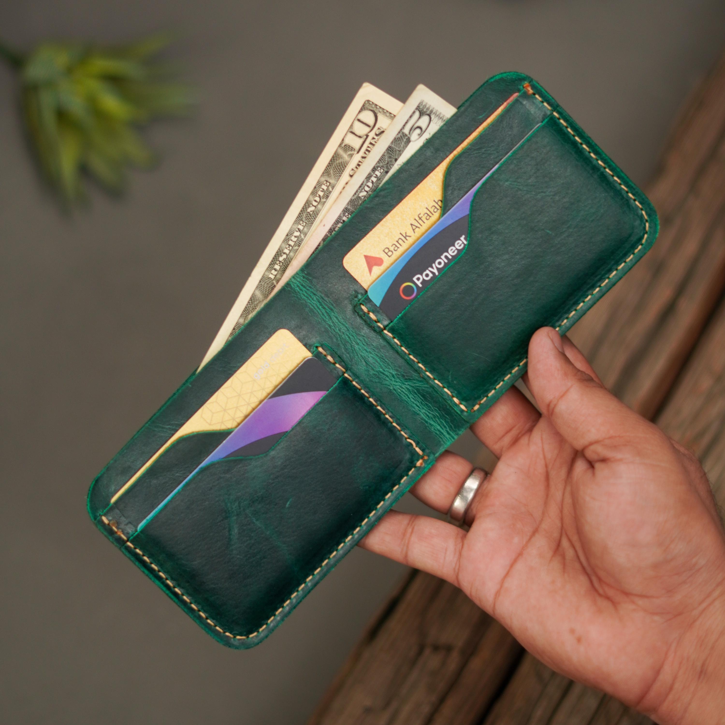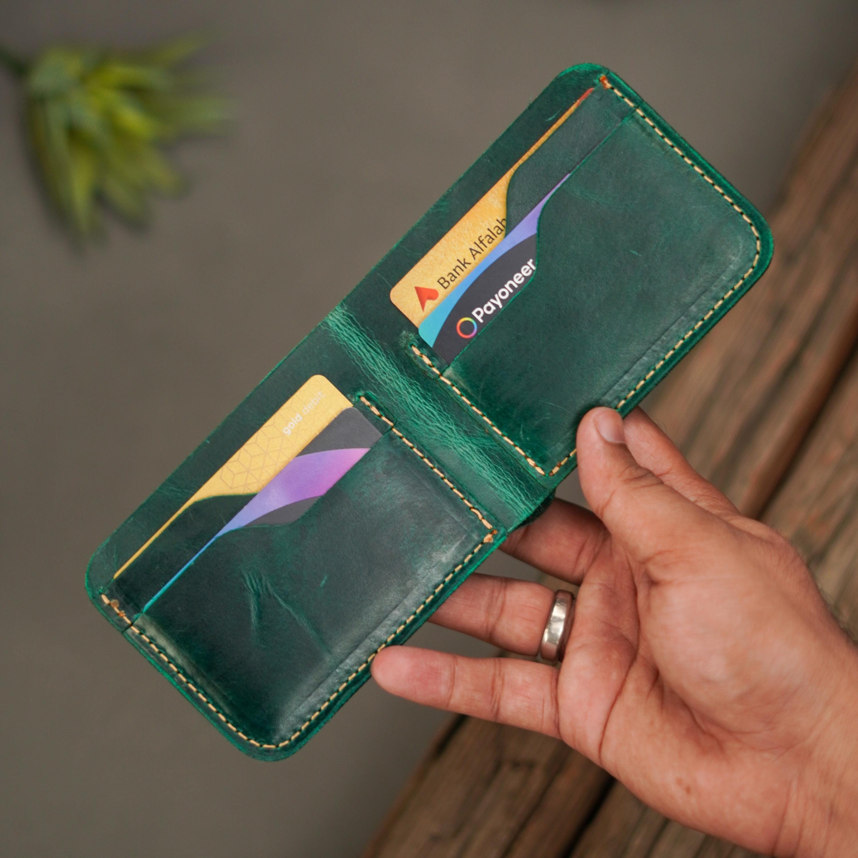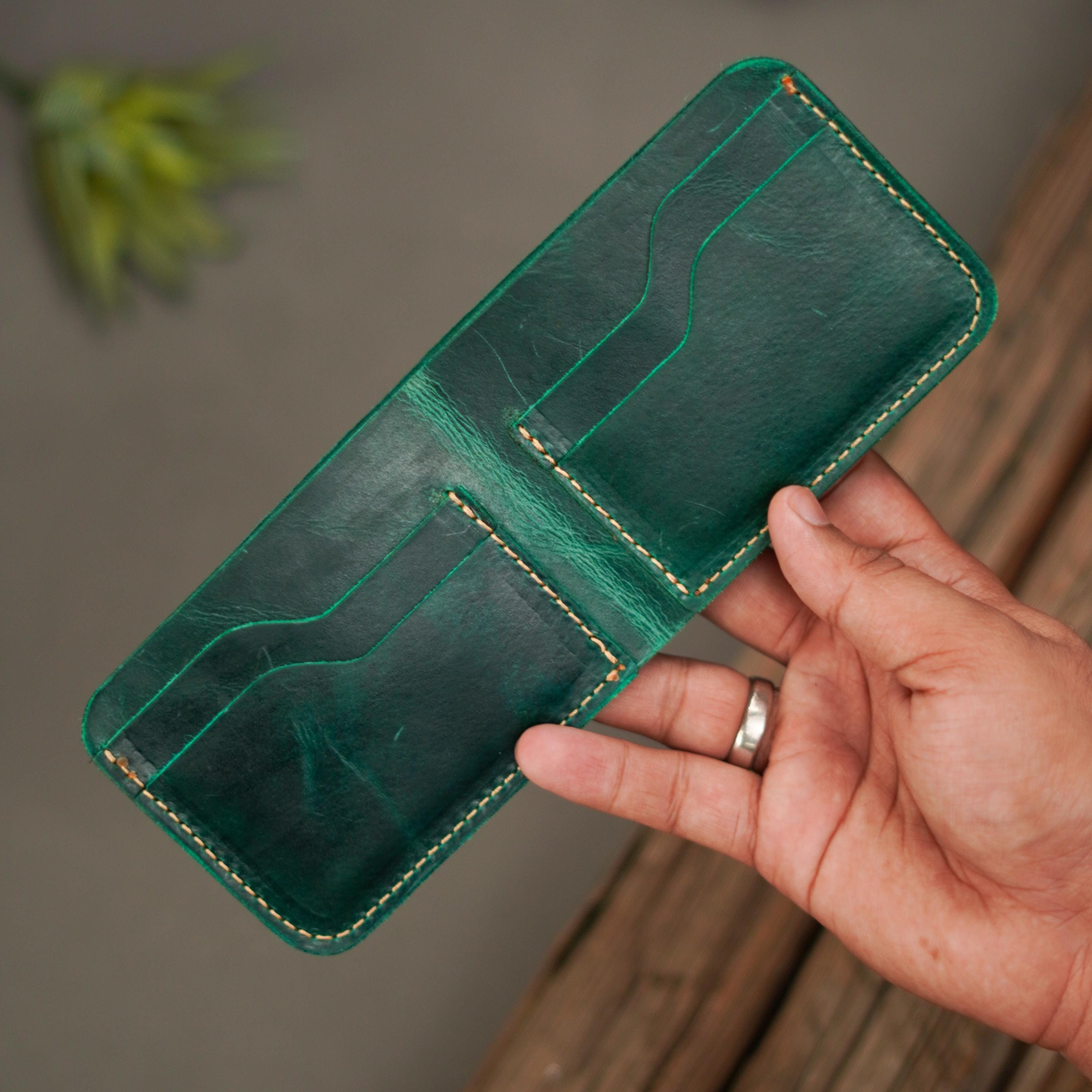 Carry timeless style with this Handmade Green Leather Wallet. Crafted from pure genuine leather, it’s designed to be slim, durable, and elegant.