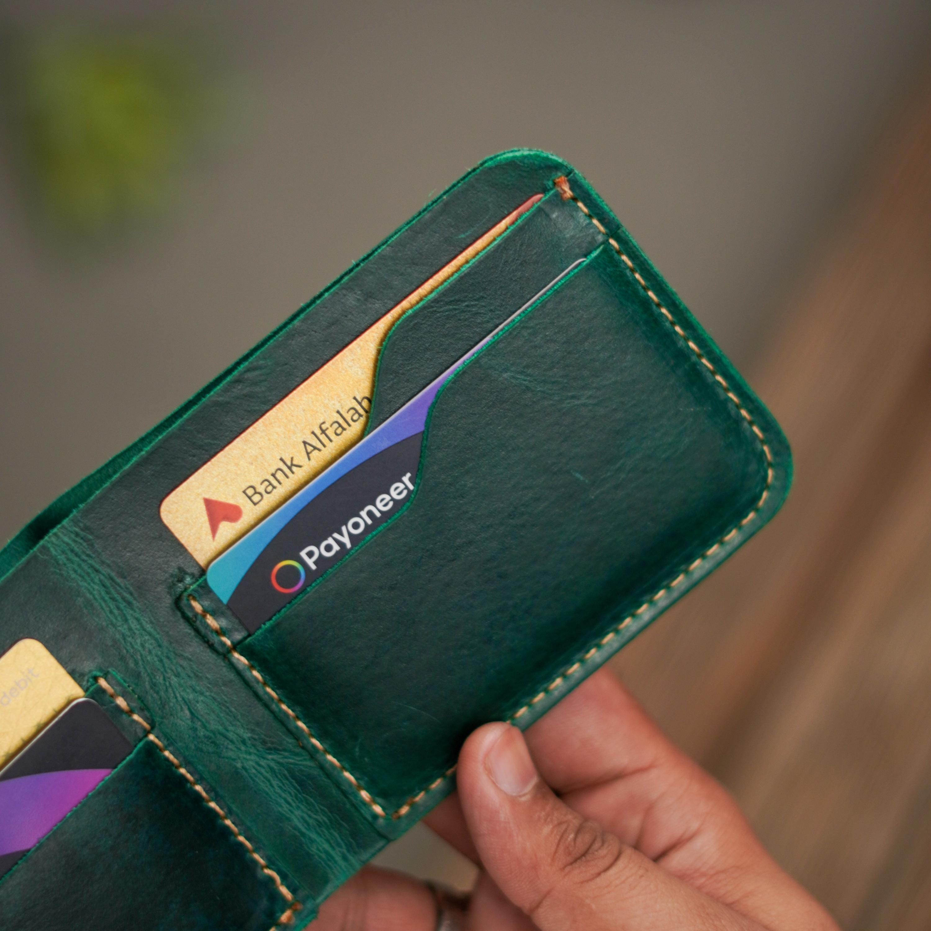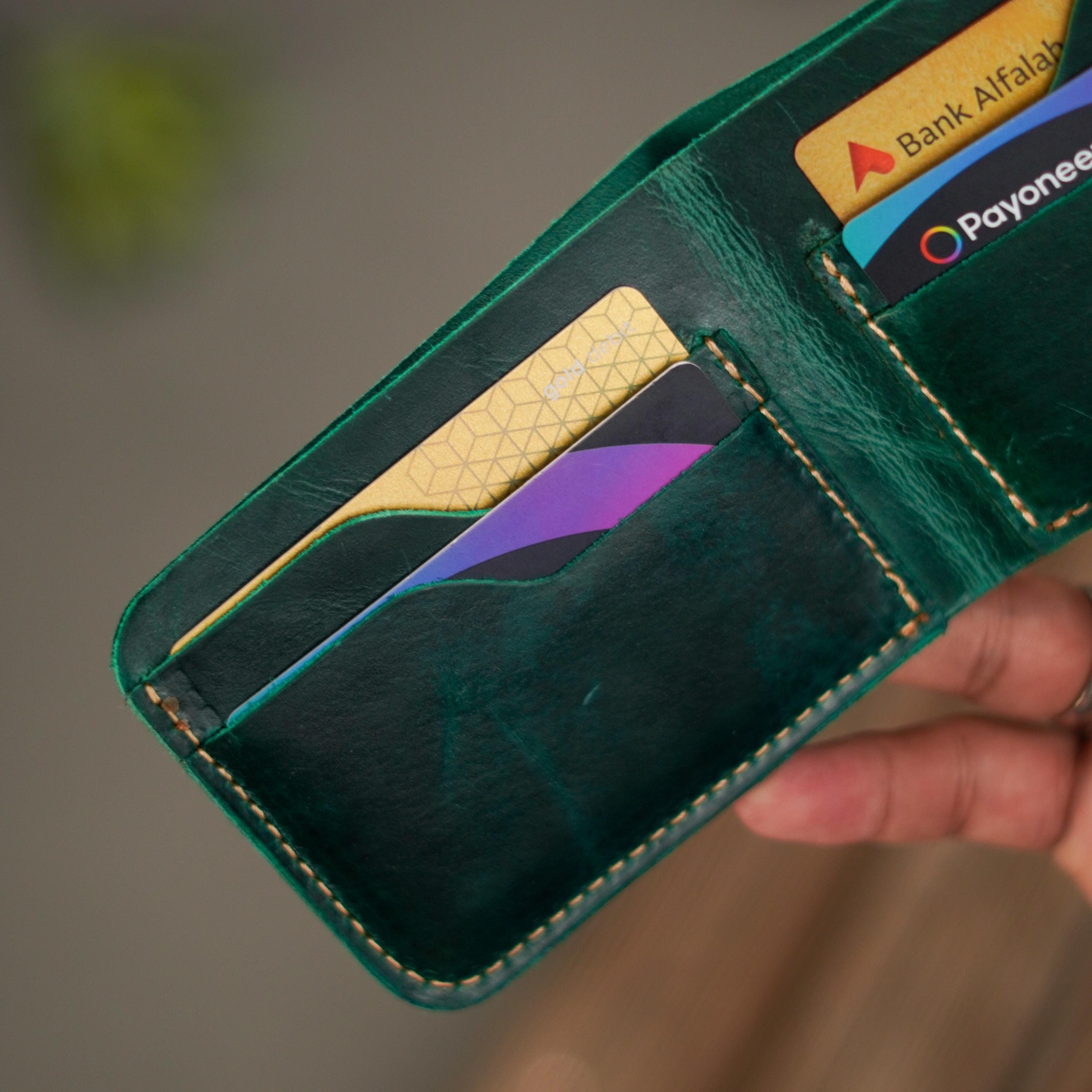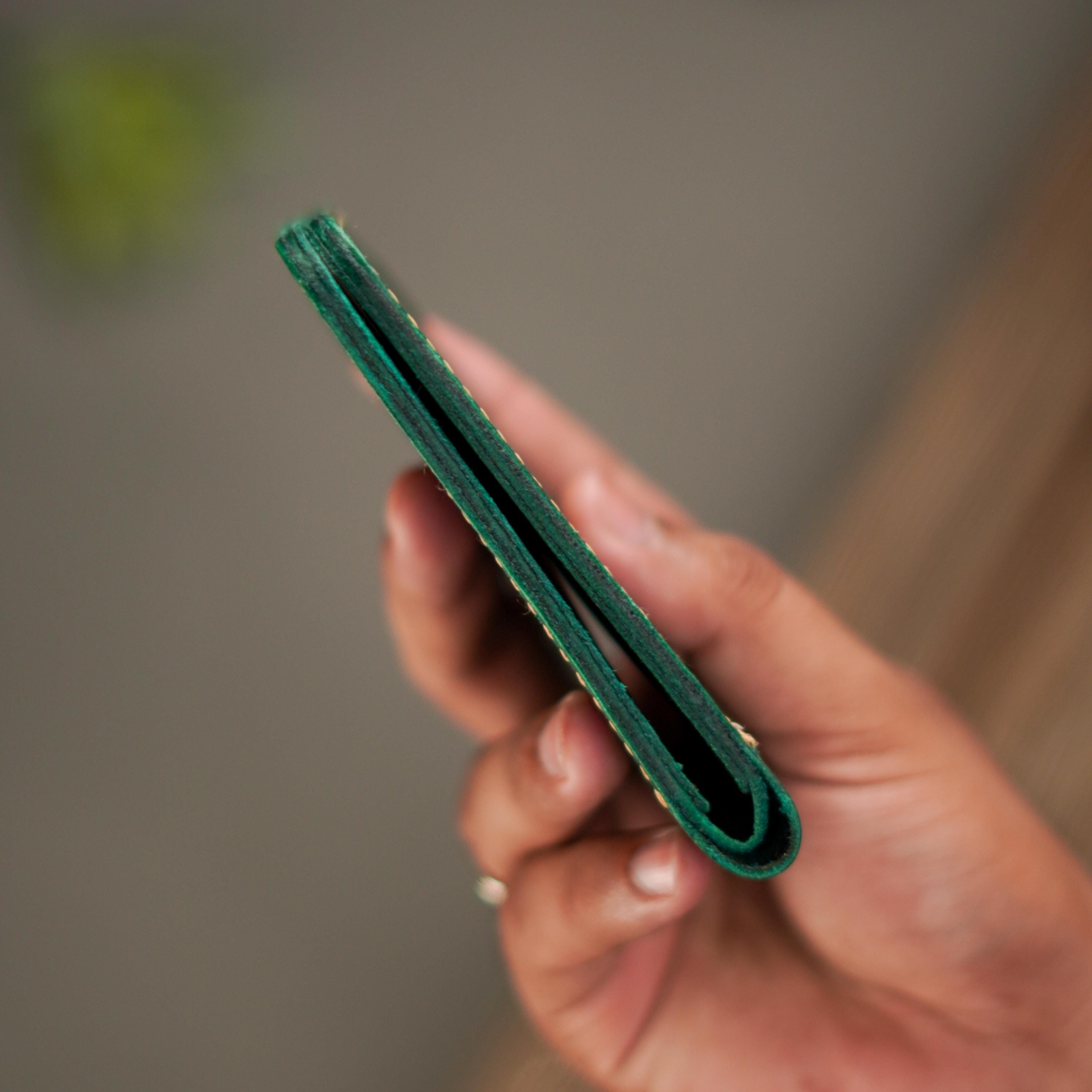 Carry timeless style with this Handmade Green Leather Wallet. Crafted from pure genuine leather, it’s designed to be slim, durable, and elegant.